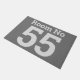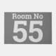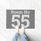 Hotel room number in clear bold lettering on a large doormat. Grey colours. Clearly show the number of your room.