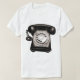A t-shirt with a big telephone motif in warm toned black and white.
