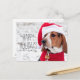 Hound dog wearing a winter coat and a Christmas Holiday Postcard