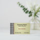 A very elegant and stylish business card. A stripe of black and white houndstooth on the left side against a softly graded cream background. A red satin ribbon ties sit all together.