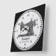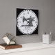 Perfect gift for anyone who loves to sew or quilt. Personalise this vintage looking wall clock printed with a vintage style sewing machine image in a houndstooth check pattern. Neutral black and white colours allow it to be a nice accent in any room.Your choice of round or square.