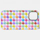 Houndstooth style surface pattern design in a bright mix of colours on a white background.