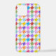 Houndstooth style surface pattern design in a bright mix of colours on a white background.