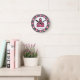 A clock featuring a houndstooth design and the logo of The Pink Schoolhouse. Personalise with your name under schoolhouse. Clock features white numbers on pink dots.
