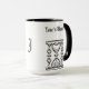 Hourglass Monogrammed Coffee Mug.  "You're on the Clock" on both sides with an old fashioned Hourglass.  You can Add Your Monogram to the Side (see the Monogram "J" and Change it to Your Own Monogram or Your Employees or Co-workers Monogram or NAME.  Choose from over 300 Font Styles.  Choose style of Mug, Colour Combinations.  Travel Mugs available in White and Steel.  Frosted Customisable Coffee Mugs.