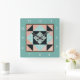Hourglass Patch Quilt Block Turquoise & Peach Square Wall Clock