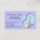 House cleaning business card done in blue, with graphics of cleaning tools and bubbles. Personalise the custom text to suit your business needs.