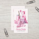 Watercolor, modern house cleaning services business card. Design features dustpan, spray bottle and cleaning supplies icons in pink shades on a blush pink background, your name and title on the front. Personalise further with your contact details, qr code to your website and social media details on the back. Perfect for domestic or industrial cleaners.