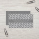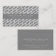 Modern business card features a brick design in a neutral light grey colour palette with custom name and title or role presented on a grey banner with coordinating light grey accents and text. The back of the card is plain and simple with coordinating text on a grey background.
