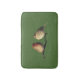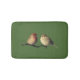 This bath mat features a pair of house finches perched on a branch. The male has red plumage on his head and breast. The female is tan and brown with stripes. Easily change the green background to the colour that will best suit your decor.