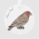 An image of An House Finch with its name on the front side and a space for you to personalise on the back