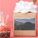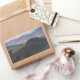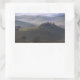 Rectangular photo sticker with a farmhouse in the morning fog at the break of dawn in Tuscany between the rolling hills of the Val d’Orcia valley between Pienza and San Quirico d’Orcia in Italy.