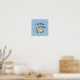 A fun graphic art poster for dog lovers. The poster is made of simple A house is not a home without a dog! saying and a cute cartoon dog illustration. The cheerful blue background is filled with paw prints. Fun little poster for the home of a dog owner or dog owning family.