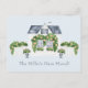 House Moving Announcement Postcard. This cute moving announcement postcard features a hand-painted watercolor house with peach and pink flowers. The back includes text that can easily be personalised.