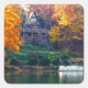 An A-Frame house on Lake Killarney in Ironton, Missouri in the autumn.