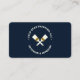 Stylish house painter's paintbrush emblem style logo with two crossed paint brushes. Navy blue background with white text.
