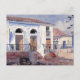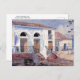 A fine art postcard with the watercolor, House, Santiago, Cuba (c. 1885), by the American artist Winslow Homer (1836-1910). A cityscape of a white stucco house on a street in the country of Cuba with a red tile roof.