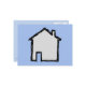 A house illustration in black and grey. This house icon was sketched with a graphics tablet. This black house symbol is on a blue colour.
