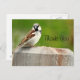 House sparrow Thank You Post Card. House sparrow on the deck in the backyard during spring. Customise it by adding or changing the text! Make sure to check out all my other unique designs at www.zazzle.com/lsarmentoart.