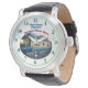The Houseboat Captain's wristwatch, made especially for the houseboat captain who enjoys exploring the inland waterways, is rugged, stylish, and quite a conversation piece, and even makes a nice gift. The Men's Vintage Black Leather Strap Watch is a big-faced timepiece that will never go out of style. Featuring a three-hand quartz movement and genuine leather strap, this watch’s classic look is great for both formal and fun occasions. Customise the face with your name and designs to make a watch perfectly matched to your personality and style. This Men's wristwatch has a metal alloy watch face, that measures 1.45 inches in diameter, with a leather strap that measures 9.25 inches in diameter x 0.86 inches. The watch case measures 1.75 inches in diameter, with a weight of 0.115 lbs. 3-hand analogue Japan Quartz,® full-colour custom printing on the face. The leather strap has a buckle closure and this watch is water-resistant up to 3 ATM (98.4 ft.), the Houseboat Captian's watch has a 1-year manufacturer's limited warranty, battery included, and this product is recommended for ages 13+