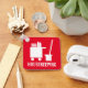 Housekeeping hotel room cleaning custom keychain for cleaner or janitor. Add your own custom text and colours optionally. Custom keychain for keys at hotels, motel, bed and breakfast, hospitality business, hostel, conference, home, office space, restaurant, company, school etc. Red and white or custom colours. Housekeeper logo with cleaning trolley on wheel, broom or mop, bucket, towels and bottles.