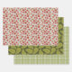 These three wrapping paper designs are inspired by houseplants and the lush, lively, green feeling of being surrounded by plants in your indoor spaces. The three patterns are 1) painted poppies, 2) fiddle leaf fig, and 3) cane chair in green.