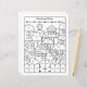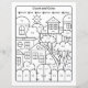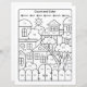 Houses line drawing colouring page with math quiz