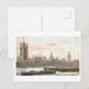 This is a recreation of a vintage travel postcard showing the Houses of Parliament in London.