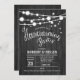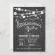 Rustic Housewarming Invitation with grey wood pattern and string fairy lights. Perfect for a rustic style party.