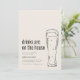 Invite friends and family to celebrate your new home with a charming housewarming party invitation featuring the playful theme "Drinks Are On the House." The background is a warm beige, creating a welcoming and cosy atmosphere. On the left side, the party details are presented in a simple black font, ensuring clarity and elegance. On the right, a minimalist outline illustration of a draught beer adds a touch of fun and character to the design. This invitation perfectly blends a lighthearted theme with a stylish aesthetic, promising a delightful and memorable housewarming celebration.