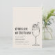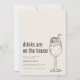 Invite friends and family to celebrate your new home with a charming housewarming party invitation featuring the playful theme "Drinks Are On the House." The background is a warm beige, creating a welcoming and cosy atmosphere. On the left side, the party details are presented in a simple black font, ensuring clarity and elegance. On the right, a minimalist outline illustration of a spritz drink adds a touch of fun and character to the design. This invitation perfectly blends a lighthearted theme with a stylish aesthetic, promising a delightful and memorable housewarming celebration.