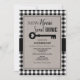 Trendy buffalo check and kraft paper design with a classic skeleton key for these home sweet new home, housewarming party invitations