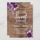Purple Floral Wood Housewarming Party Invitation. Changing your listing for a BBQ Housewarming, new home announcement,, etc. Simply change the text to suit your party. Back print included.