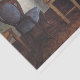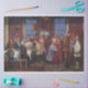This design features a vintage painting by the Russian artist Kuzma Petrov-Vodkin (1878–1939). It shows a party taking place to commemorate a family moving into a new home. There are guests of all ages present, including a mother with her young baby. The housewarming party is taking place in a grand hall. Some of the guests are eating food at a table while others are standing and talking. A boy in shorts is feeding a parrot in a cage. There is tea being brewed in a traditional Russian samovar. The tall windows reveal a cityscape at night.