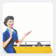 Funny image of a housewife proudly displaying her washer and dryer. Bright retro colours.