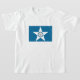 100% cotton so perfect for summer, It is a nicely designed t-shirt, the fabric is soft and the seams finished well, the body of the t shirt has no side seams. I bought a medium size for my two grandsons, aged 9 and 8 it will be slightly big on them but I would rather that than too small