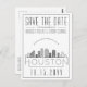 A unique wedding save-the-date postcard for a marriage taking place in the beautiful and historic city of Houston. This invitation features a stylised illustration of the city's unique skyline with its name underneath. This is followed by your wedding day information in a matching open lined style. On the reverse side of the post is your address information. All individual elements of the invite card are unlocked so feel free to change any details necessary such as font sizes, styles and more by using the customisation function. You can add a photo to the reverse side and add a black and white filter to it. Have fun being creative and making it your own!