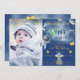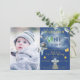 Adorable baby Birthday invitation featuring an astronaut, rocket ships, Earth & stars set on a dark blue background. Flip our cute boys invitation over to view a coordinating shooting star back. Visit our shop for our entire line including matching diaper raffle & book cards.