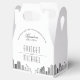 Bring a smile to the face of your wedding guest with these cute yet classy Houston, Texas city skyline gable boxes. They feature a welcome greeting across the front top, followed by the city name and wedding date underneath it. Underneath this are the names of the newlyweds in a complimentary airy style font. Surrounding the bottom on all sides sits a modern deco-stylised version of the city's unique skyline.
