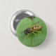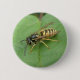 This beautiful button features a detailed photograph of a gorgeous black and yellow striped hoverfly resting on a leaf. The photograph was taken using macro photography for a fantastically detailed and sharp close-up image.