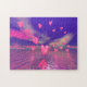 A puzzle with my 3d artwork of pink hearts floating above reflecting waters.