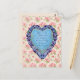 "You must allow me to tell you how ardently I admire and love you", famous quote said by Mr Darcy when proposing to miss Elizabeth Bennet, from Pride and Prejudice by Jane Austen. Here on a vintage Valentine's Day Card with a floral blue and violet heart on a pink floral background.