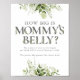A fun game for your guests to guess how big mummy's belly is. An elegant, fun baby shower sign featuring modern dusty blue typography and pretty botanical greenery foliage. Designed by Thisisnotme©