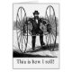 This antique bicycle from the 1860s has an unusual side-by-side wheel configuration. It also uses both arm and leg power. The added caption is "This is how I roll!"