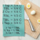 This kitchen towel tells you how much and how many without having to do all that math! When you are cooking and sometimes don't have the measuring spoon or cup that you need, this table tells you how to make it work! You can change the background colour if you like! Available on other products.