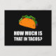Mexican fast food fans that would rather be paid in their favourite eats ask how much is that in tacos? Check out this funny custom design on tees, shirts, mugs, cases, gifts and apparel.