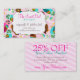 Colourful owl themed business card with Coupon / Discount on the backside - perfect for a bakery, cafe, boutique or other retail shop. Customise with your own text for a perfectly personalised card that will grab your customers' attention! {{For specific colours or help with layout, drop me a line at mel@creativemel.com - I'll be happy to help!}}