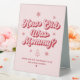 I ordered a number of items from Zazzle and all of them are wonderful. This table tent sign is more durable and professional than I expected. It’s not just a heavy cardboard tent. It has the feel and weight of durable plastic and will make a wonderful keepsake for the new mom! I highly recommend this product. .