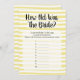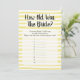 Yellow and white Guess The Bride's Age game for bridal showers. Hand drawn white horizontal stripes.