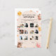This adorable baby shower game card features a charming farm animal theme with cute illustrations of a cow, bunny, chick, horse, and pig, surrounded by cheerful flowers and a smiling sun. The soft pastel colours and whimsical design create a warm and inviting atmosphere. Visit our shop to view our entire Brown Cute Farm Animal collection.